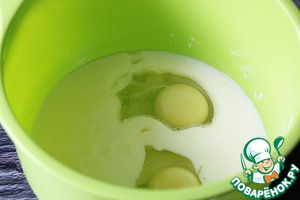 Всыпать в миску муку, смешанную с солью и разрыхлителем.