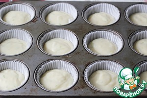 Формочки для маффинов застелить бумажными вкладышами, разложить в них тесто, заполняя фомочки не более, чем на 3/4 высоты.