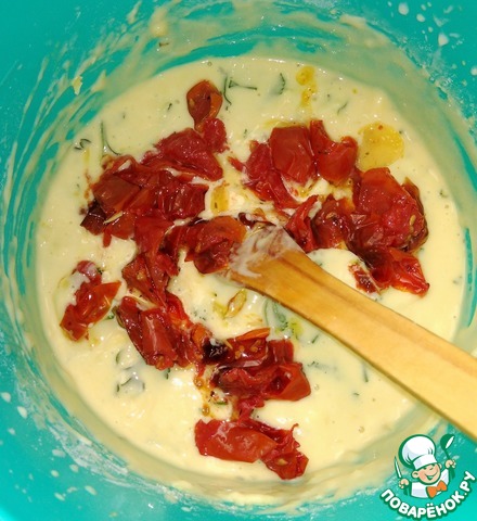 Рецепт «Оладьи с сыром и вялеными помидорами»: