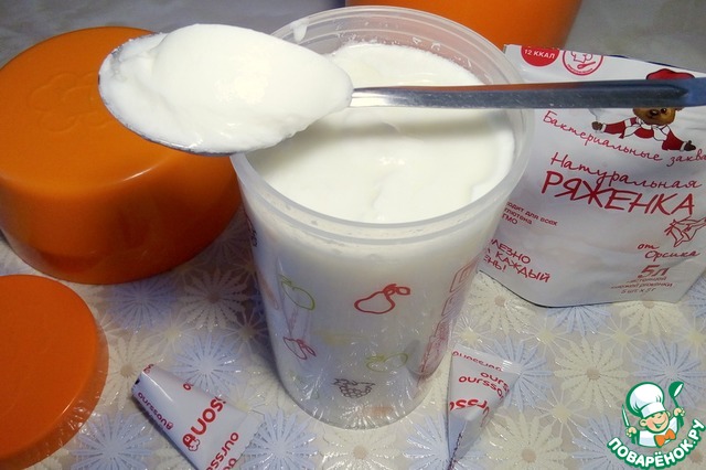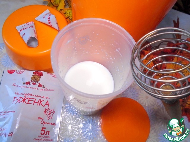 Для начала нам нужно заквасить ряженку. Для этого используем йогуртницу-термос Orsik, которая работает без электричества.