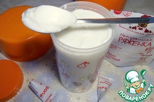 По истечении времени получаем шикарнейшую, очень густую и вкусную ряженку, приготовленную из сухой закваски Orsik. Вот на ней-то и будем готовить тесто для пирожков.