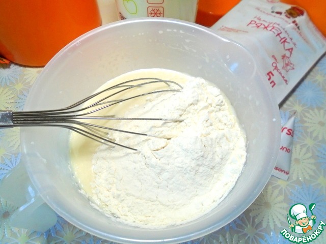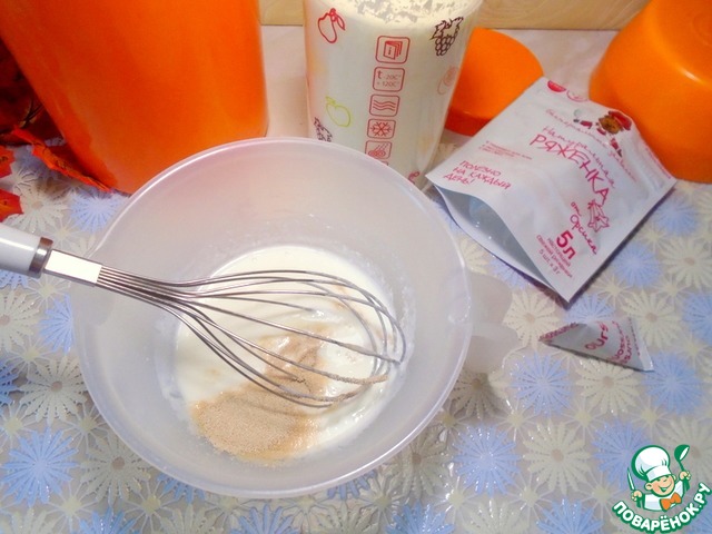 Я поступаю так: вливаю третью часть теплого молока, высыпаю сухую закваску Orsik и взбиваю веселкой, она очень хорошо разбивает смесь за секунды. -