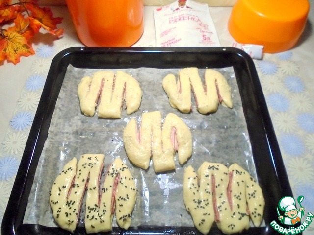 Смазать: желток + молоко, посыпать сверху кунжутом и дать подойти минут 10-15.
