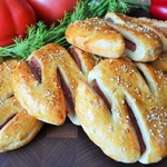 Эти замечательные пирожки никого не оставят равнодушным. Я часто готовлю их не только к бульону, но и просто так, попить чайку или кофе, или взять с собой на природу. Внук их в школу любит брать. Даже готовила их на праздничный стол, улетали первыми. Тесто готовится быстро. Хоть начинка и готовая, привычная для нас колбаса, вкус, скажу вам, необыкновенный. Тесто очень мягкое, с хрустящей корочкой, они долго не черствеют, хотя это ни к чему, съедаются за раз. Побалуйте себя и свою семью этой чудесной выпечкой.