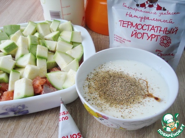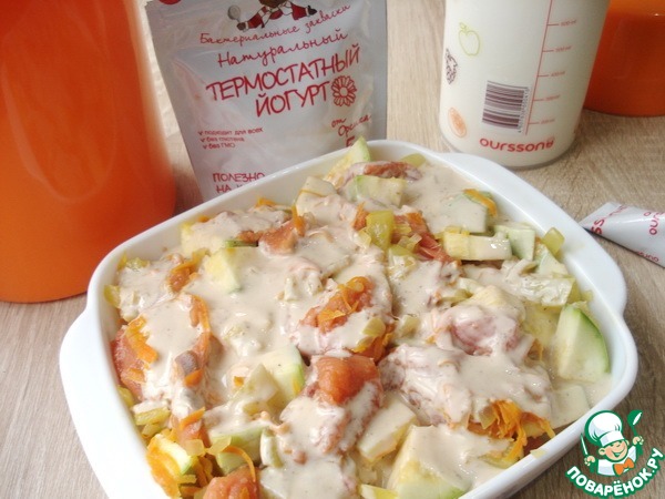 • Польем йогуртом. И поставим в духовку при температуре 180 градсов, минут на 20-30.