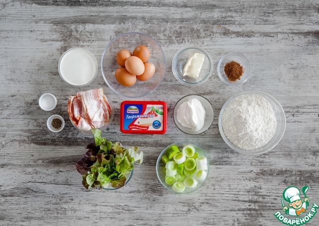 Ингредиенты для «Лотарингский киш с сыром и беконом»: