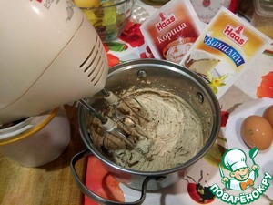 Всыпаем просеяную муку с разрыхлителем, взбиваем миксером до однородности. -