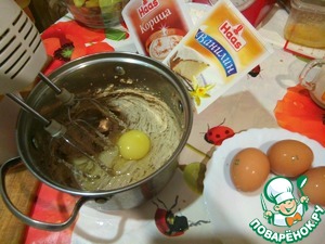 Далее к маслу добавляем яйца по одному, тщательно перемешивая предыдущее.