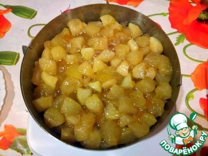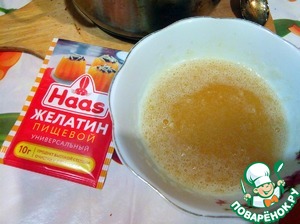 У вас должно получиться: мягкие кусочки фруктов и сироп на дне. Горячий сироп слить, развести в нем 10 гр Желатина ТМ Хаас и отправить сироп назад к кусочкам яблок. Оставляем остыть.