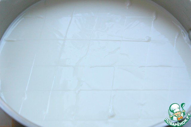 Накрываем пищевой пленкой и отправляем в холодильник на 3-4 часа.