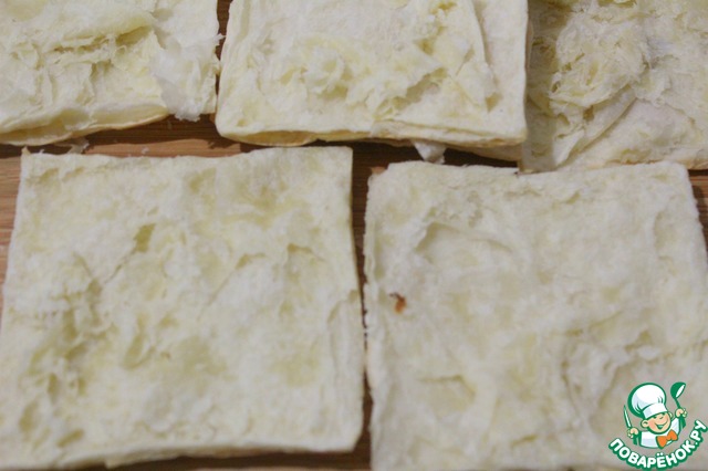 Остужаем и разрезаем каждый квадрат вдоль пополам, расслаиваем.