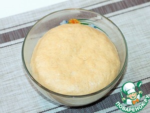 К полученной смеси небольшими частями добавить мучную смесь. Замесить мягкое тесто не липнущее к рукам. Смазать чистую миску растительным маслом (0,5 ст. л.) и выложить тесто, прокрутить в масле.