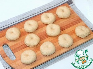 10). Разделить тесто на 10 частей, вес каждой от 75-80 грамм. Форма шар.
