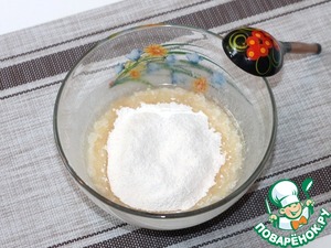 4). 2 ст. л. просеянной пшеничной муки смешать с сухими дрожжами. Добавить сладкую ряженку, перемешать и поставить миску с опарой в теплое место до появления пенной шапочки.