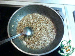 В карамель всыпать овсяные хлопья. Если любите солёную карамель, то можно добавить чуть соли, потом маленькие кристалики будут попадаться-это очень вкусно! Интенсивно перемешать и жарить до того момента, когда карамель приобретет красивый светло-коричневый цвет, а хлопья начнут издавать ореховый аромат.