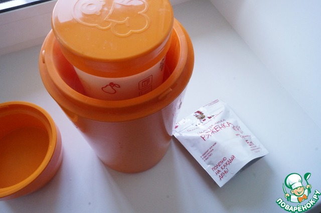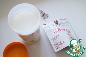 Для ряженки необходимо топленое молоко. У меня из магазина, но я рекомендую приготовить его дома, так как вкус у него совсем другой. В простерилизованную тару налить 1 л молока. Добавить закваску и тщательно перемешать, до полного растворения. Закрыть крышкой.