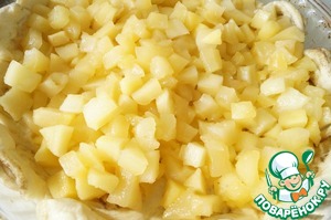 Выложить яблоки. Накрыть вторым пластом. Выпекать при температуре 180 гр. до красивого золотого цвета.