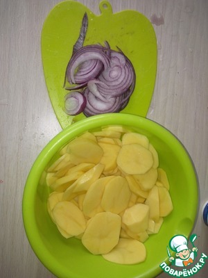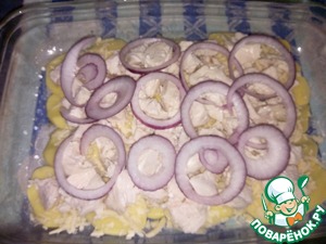 Теперь закрываем всё "крышей" из картофеля. (как показано на фото)