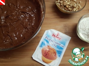 Просеять муку с разрыхлителем ТМ ХААС в шоколадную массу. Добавить орешки, перемешать