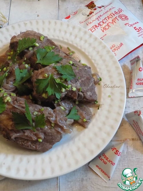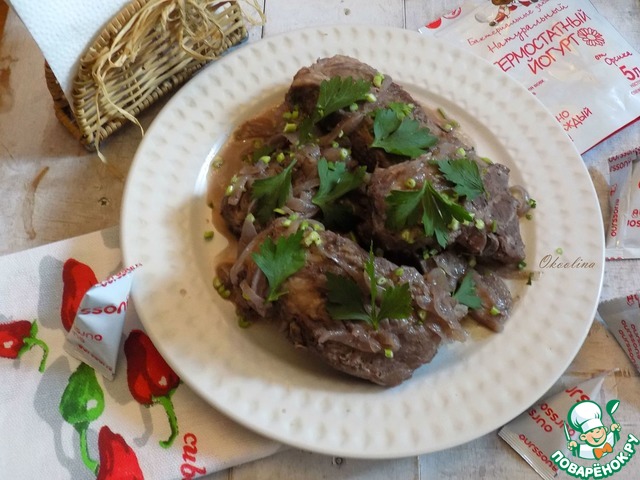 Свиные рёбрышки, замаринованный в домашнем термостатном йогурте, сделанном при помощи закваски Oursson и тушёные в красном сухом вине в мультиварке. Необыкновенно вкусные и сочные, очень ароматные.