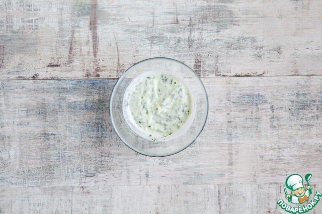 Заранее приготовьте соус: очистите и порубите чеснок, мелко порубите кинзу. Сложите кинзу и чеснок в ступку, приправьте солью и растолките в пасту. Смешайте эту пасту с мацони до однородности, поставьте в холодильник на 2 ч.
