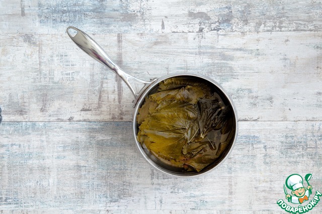 Виноградные листья залейте кипятком на 5 мин., затем слейте воду.