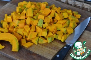 Тыкву почистить и тоже нарезать на кусочки
