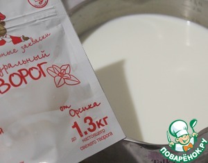 Литр молока выливаем в кастрюлю и растворяем 1 пакетик закваски творог.