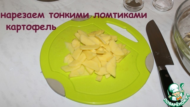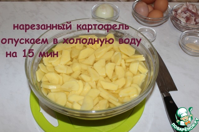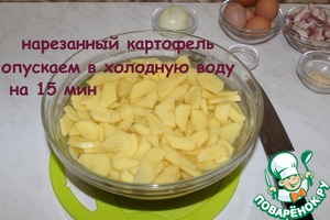 Нарезанный картофель опускаем в холодную воду на 15 минут.