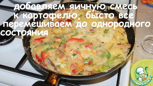 Добавляем яичную смесь к картофелю. Быстро все перемешиваем до однородного состояния.