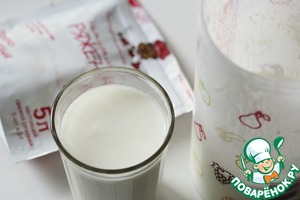 В пастеризованное молоко комнатной температуры всыпать закваску от Oursson, хорошо перемешать до полного ее растворения.