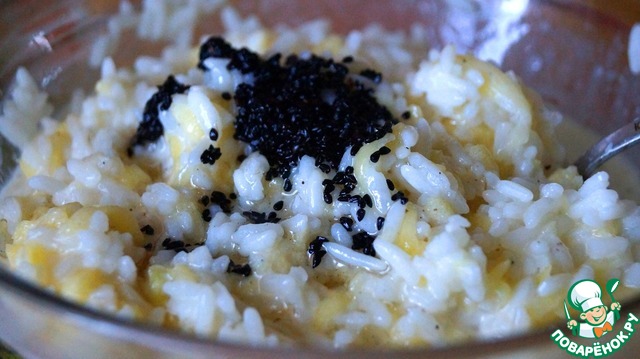 Обжаренные семена высыпаем к рису вместе с маслом. И снова все перемешиваем.