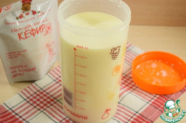 Нежный, вкусный, густой кефир. Убираем его на 2 или более часов в холодильник.