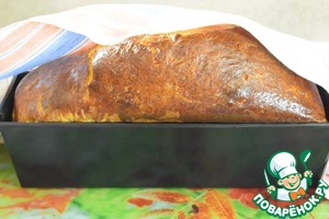 Готовый хлеб вытаскиваем из духовки, освобождаем от формы, закрываем полотенцем и даем полностью остыть. По желанию можно верх хлеба посыпать сахарной пудрой.