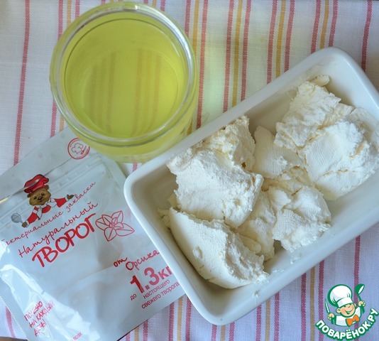 - Творог (150 г. в тесто + 80 г. в начинку) — 230 г