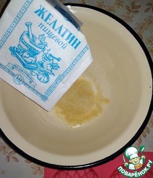 Залить желатин водой и оставить на 20-30 минут для набухания.