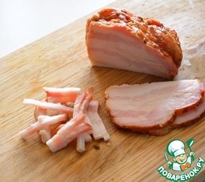 Копченую грудинку нарежьте соломкой -