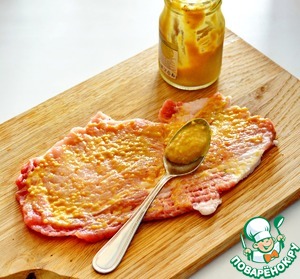 Каждый кусок смажьте горчицей (используйте 2/3 горчицы, остальную оставьте для соуса)