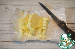 • Холодное масло нарежьте мелким кубиком.