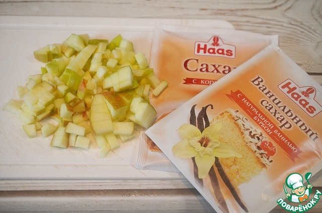 • Добавьте к яблокам по 1 ст. л. ванильного сахара и сахара с корицей. Я всегда для выпечки пользуюсь продукцией ТМ HAAS. Ванильный сахар с натуральной ванилью и сахар с корицей - все высочайшего качества.