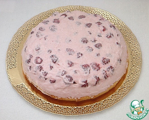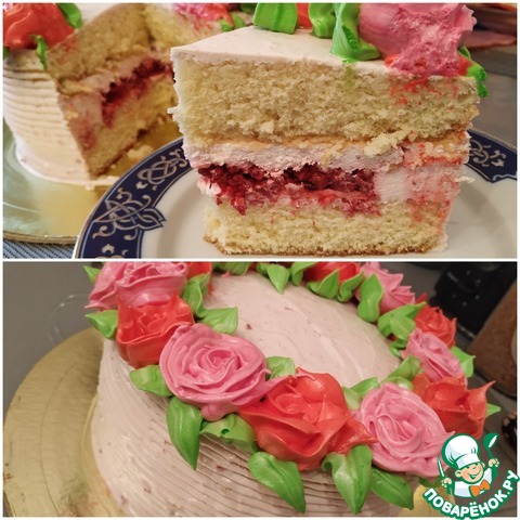 Рецепт "Бисквитный торт со сливочно-малиновым кремом":