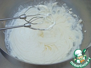 Взбивать до тех пор, пока сливки не станут жесткими пиками. -