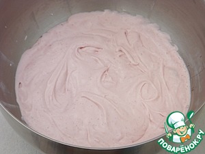 Продолжая взбивать, добавить желатиновую смесь малинового соуса.