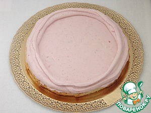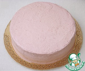 Распределить тонким слоем полученный крем на пропитанный сиропом бисквитный корж.