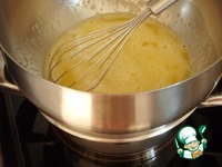 Постоянно взбивая венчиком, в течение 3 минут прогреть сахарно-яичную смесь до теплого состояния. |