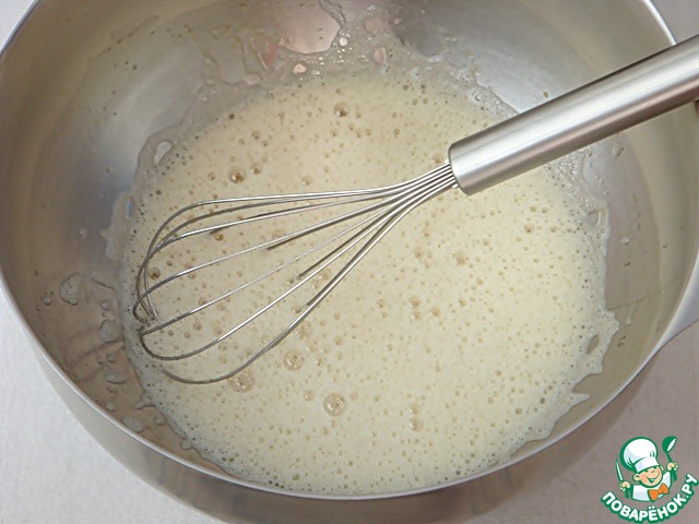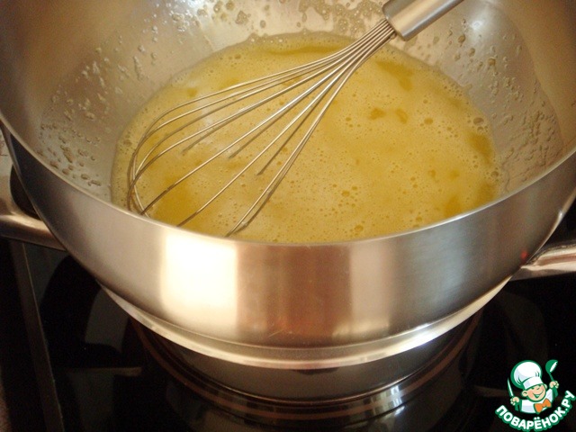 Для бисквита в жаропрочной чаше (предпочтительно из нержавеющей стали) слегка взбить яйца с сахаром. |