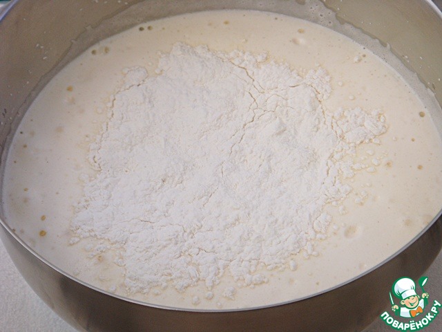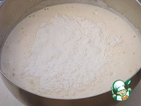Так им же образом ввести половину оставшейся муки, а затем и остальную.