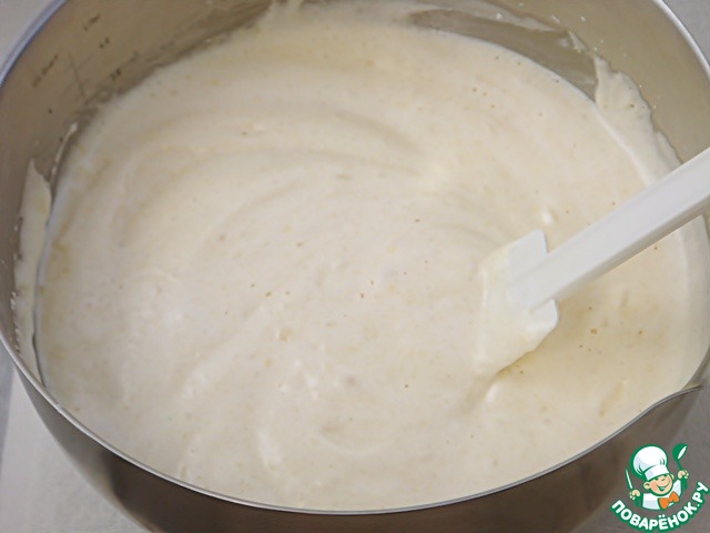1 стакан (240 мл) теста добавить в теплое растопленное сливочное масло и перемешать. |