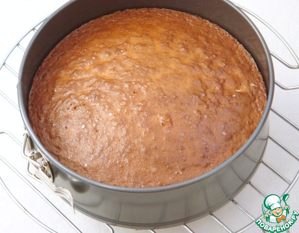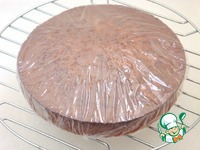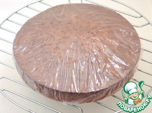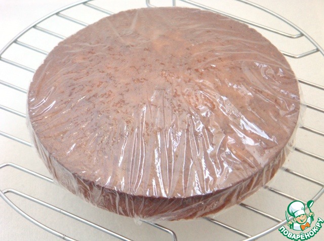 Охладить бисквит и освободить от формы. Обернуть бисквит пищевой пленкой и оставить на ночь в холодильнике, чтобы развить его аромат.