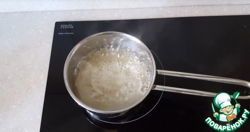 В сотейнике смешиваем сахар воду и глюкозный (инвертный) сироп. Варим до 103 градусов. Если нет термометра ориентируемся на тот момент, когда сироп начнет активно кипеть.